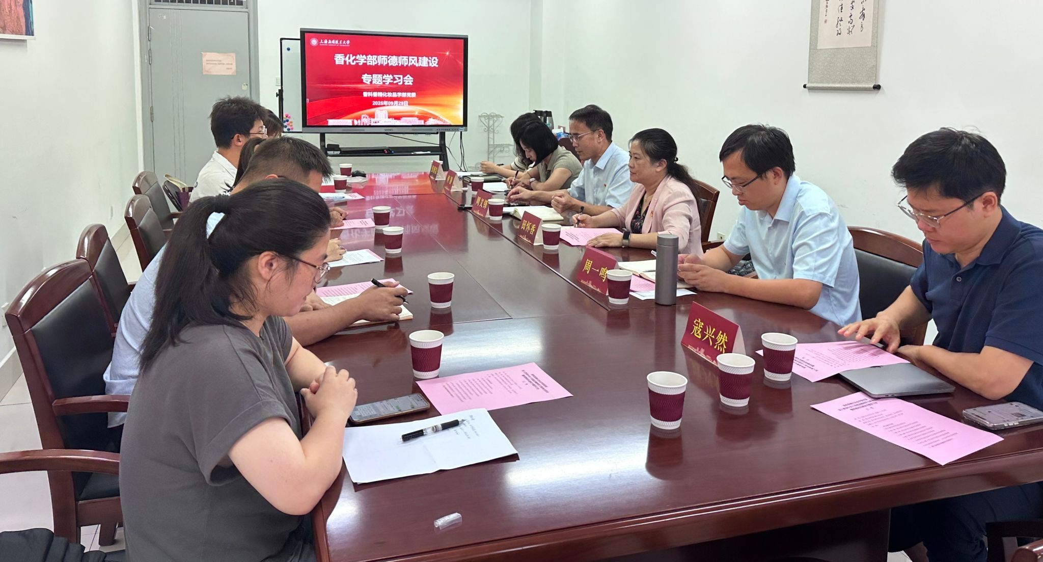 为切实加强师德师风建设,凝聚育人共识,近日,香料香精化妆品学部组织召开师德师风专题学习会,传达学习习近平总书记给全国特岗教师代表重要回信精神。会议由学部党委副书记(主持工作)周义锋主持,香化学部班子成员、党委委员和部分教师代表参会。