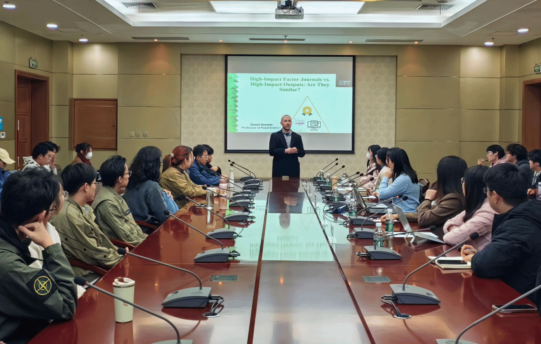 Granato教授从自身研究切入,引导师生关注科研的终极目标:研究工作应致力于解决实际问题。他强调,真正的高影响力不仅在于发表顶级期刊论文,更在于满足社会需求、改善全球食品营养健康。通过案例与数据,他系统阐释了科研价值应从学术、环境、经济等多维衡量,激励师生推动成果从“学术影响力”向“产业驱动力”转化。
