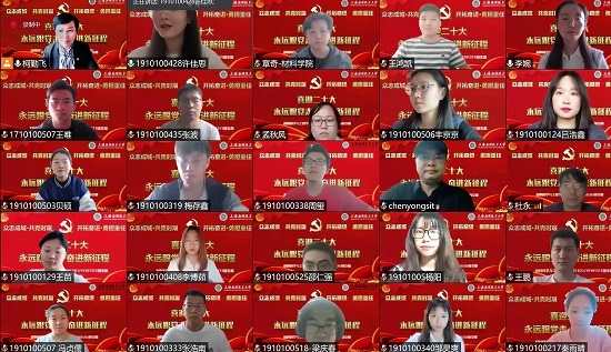 本次活动内容丰富、形式多样,在奏唱中国共产主义青年团团歌与重温入团誓词中,青年团员们精神饱满、斗志昂扬,再次重温宣誓时内心的激情澎湃。在回顾百年团史与“看图猜史”游戏环节中,团员们争相讲述每一幅照片后的感人故事,坚定了“高举团旗跟党走”的理想信念。在主题交流环节中,团员们围绕百年团史、初心使命、家国情怀、五四精神传承,结合疫情期间学习生活情况、志愿服务经历、劳动实践感想等方面,讲述了身边的感人事迹,激励上应青年学子以更加坚定的信心、昂扬的斗志、饱满的精神投入到疫情防控工作中。活动最后,与会师生共同观看191012D1/19101311班全体学生为抗疫而录制的加油视频,感受蕴含其中的浓浓上应情和坚定战疫心。