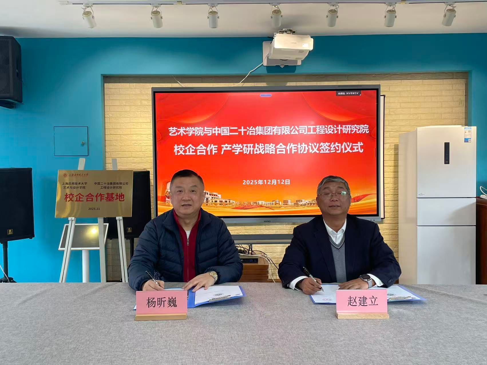 12月12日,艺术与设计学院、中国二十冶集团有限公司工程设计研究院签署校企合作及产学研战略合作协议。中国二十冶集团有限公司工程设计研究院院长赵建立、综合办公室主任王卓,艺术与设计学院院长杨昕巍、党委书记胡艺及教师代表出席活动。