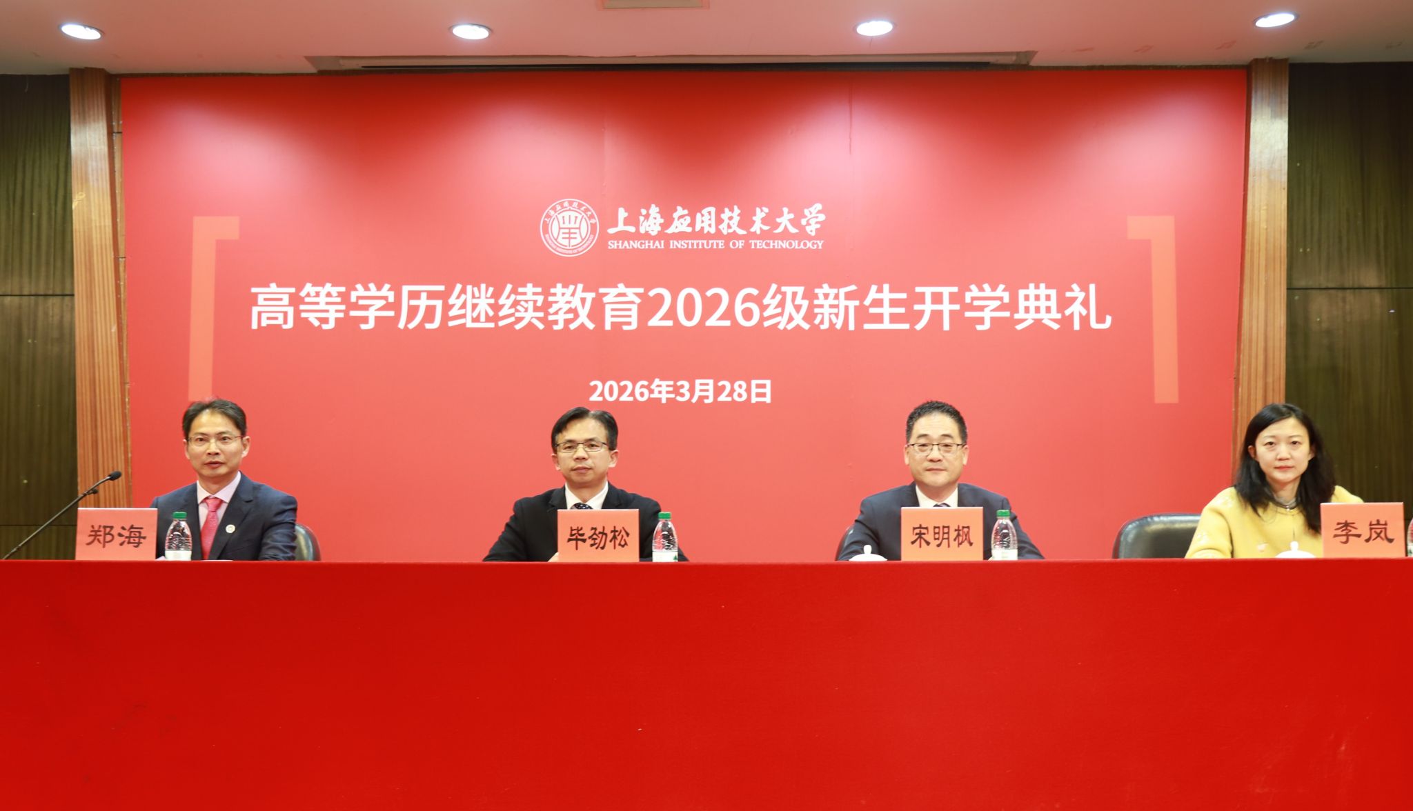 3月28日,学校高等学历继续教育2026级新生开学典礼暨入学教育在徐汇校区举行。继续教育学院院长毕劲松、直属党支部书记宋明枫,各校外教学点负责人、教师代表、企业代表、校友代表、在校生代表及继续教育学院相关教师出席典礼。本次典礼采取线上线下相结合的方式进行,近3000名师生通过云端与现场同步参与。典礼由副院长郑海主持。
