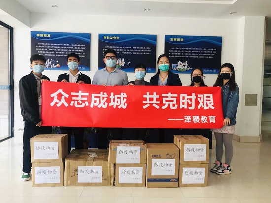 5月8日,上海泽稷教育培训有限公司副总裁吴世浩、区域总监陈亚成、市场经理徐伟来校,将多方筹集的防疫物资捐赠给经管学院。这批物资包括高浓度84消毒液、洗手凝胶、消毒湿巾、医用口罩等。