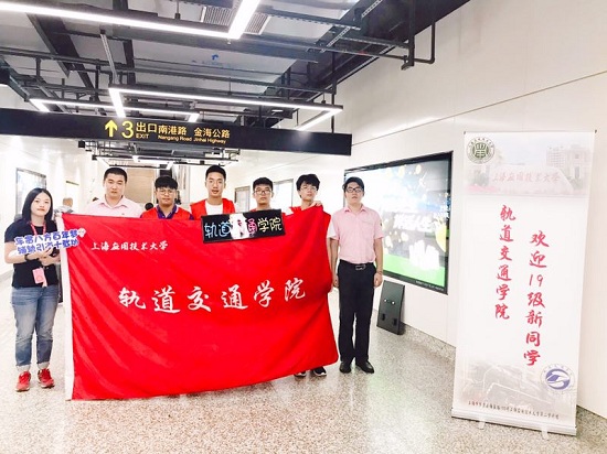 8月30日至31日是2019级新生入学报到日。轨道交通学院首次与上海地铁申通集团第一运营公司合作,在地铁5号线奉贤新城地铁站组织学生志愿者开展迎新活动。