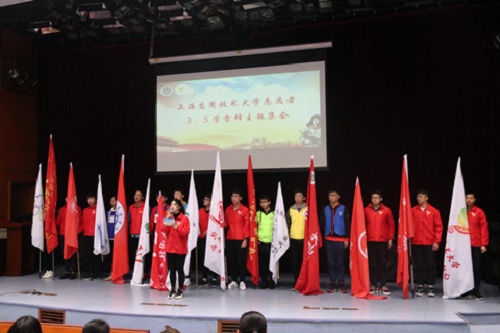 各学院志愿者队首先进行口号及队旗展示,彰显风采的同时也展现志愿者活力。随后,校学生会副主席、志愿者服务中心主任赵阳飞同学带领全体同学进行宣誓,誓词体现出上应志愿者学习雷锋精神的决心。