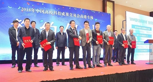 4月25日,由国家教育部科技发展中心、泰州市高港区人民政府共同举办的“智汇高港•携手创新—2018年中国高校科技成果交易会高港专场”对接活动在江苏泰州市举行,我校及全国30余所高校的专家教授和泰州市当地企业共同参会。教育部科技发展中心副主任刘红斌在会上讲话。我校技术转移中心与江苏康贝宠物食品有限公司、泰州顶声专业音响有限公司在会上达成合作意向,并在现场与江苏康贝宠物食品有限公司签订合作意向书。