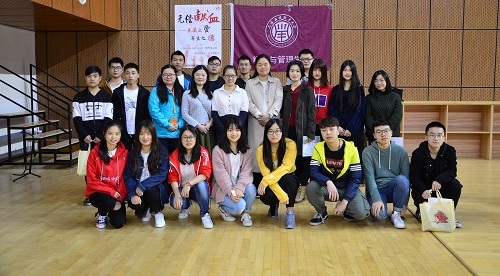 4月25日,经管学院师生积极参加无偿献血活动,学院党总支副书记、副院长杨雪,团总支书记戴舢舢及各带班辅导员亲临现场给予无私奉献同学们和志愿者们以鼓励和关心。学院2016级市场营销专业卢浩同学自愿选择单采血小板,作为我校第一例成分献血的学生,用自己的实际行动,传递着爱与感动。充分展现了经管学子以爱心温暖校园,以真情奉献社会的高尚思想,体现出新时代大学生的勇敢与担当。