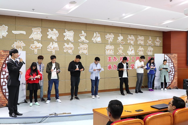 经过前期两场预赛,最终有八名优胜者进入决赛。决赛分三轮,第一轮由参赛者进行古诗词组及缺字缺句填空。第二轮为“飞花令”,四位选手通过抽签分组,根据抽取的关键字进行诗词展示。第三轮选手根据题干线索抢答说出正确诗句。最终,机械学院学生袁爽获得冠军。
