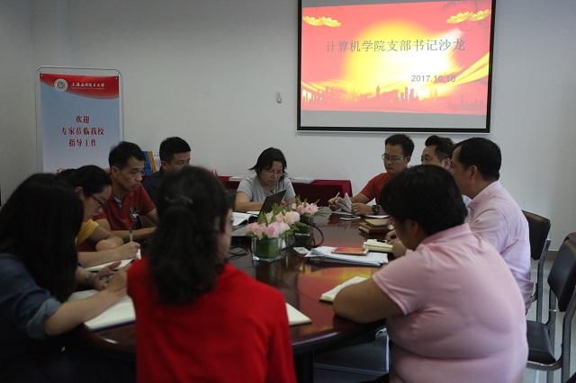 10月10日,计算机学院举办本学期第一次党支部书记沙龙。院长刘云翔,党总支书记于有进,党总支副书记、副院长陈颖,各党支部书记及组织员参加。沙龙主题为:“如何增强党支部工作的有效性”,主要聚焦学院2017年教学、科研、学科、学生就业等重点工作,研讨如何发挥党支部的战斗堡垒作用、提升党建工作有效性。