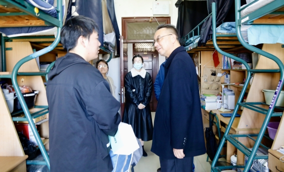 袁翔一行来到24号楼,走进学生宿舍,与学生亲切交谈,悉心询问学生校内学习生活情况、家庭情况等,了解学生校内生活的点点滴滴,鼓励学生坚定理想信念,克服当下面临的困难,努力完成学业。袁翔关照学生资助部门和学院要关心关爱好学生,为学生提供力所能及的帮助,为学生成长成才保驾护航。