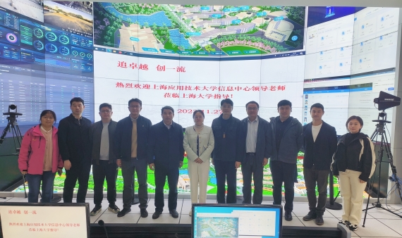 双方就高校数字化转型、信息化项目规划与申报、数据中心建设、一站式服务建设、无线网络建设、校园一卡通系统建设等方面进行了深入交流。章冬云一行还参观了上大宝山校区和延长路校区一站式服务中心、信息化运营服务中心等地。