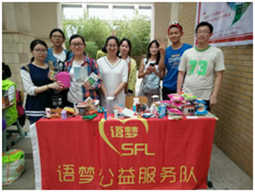 5月25日,外国语学院语梦公益服务队举行义卖活动。活动的所有物资都来自外国语学院学生的爱心捐赠。义卖活动进行了两个多小时,筹集的善款全部用来帮助偏远山区的小朋友们度过快乐的六一儿童节。活动的开展传播了正能量,让大学生懂得了为社会付出的大爱精神。
