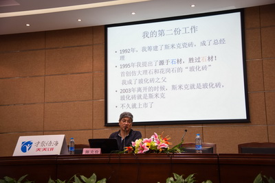 5月26日,材料学院邀请上海斯米克建筑陶瓷股份有限公司总经理陈克俭先生来校以“转型期的创新及发展思考”为题作讲座。他讲述了自己如何从一个初中毕业的小学徒成长为如今上市公司总经理的心路历程,给在座的同学们上了生动有趣的一节课。他认为当代大学生要有创新的意识、要了解市场的需求、要明确自身的优缺点,再来决定自己创新的方向。
