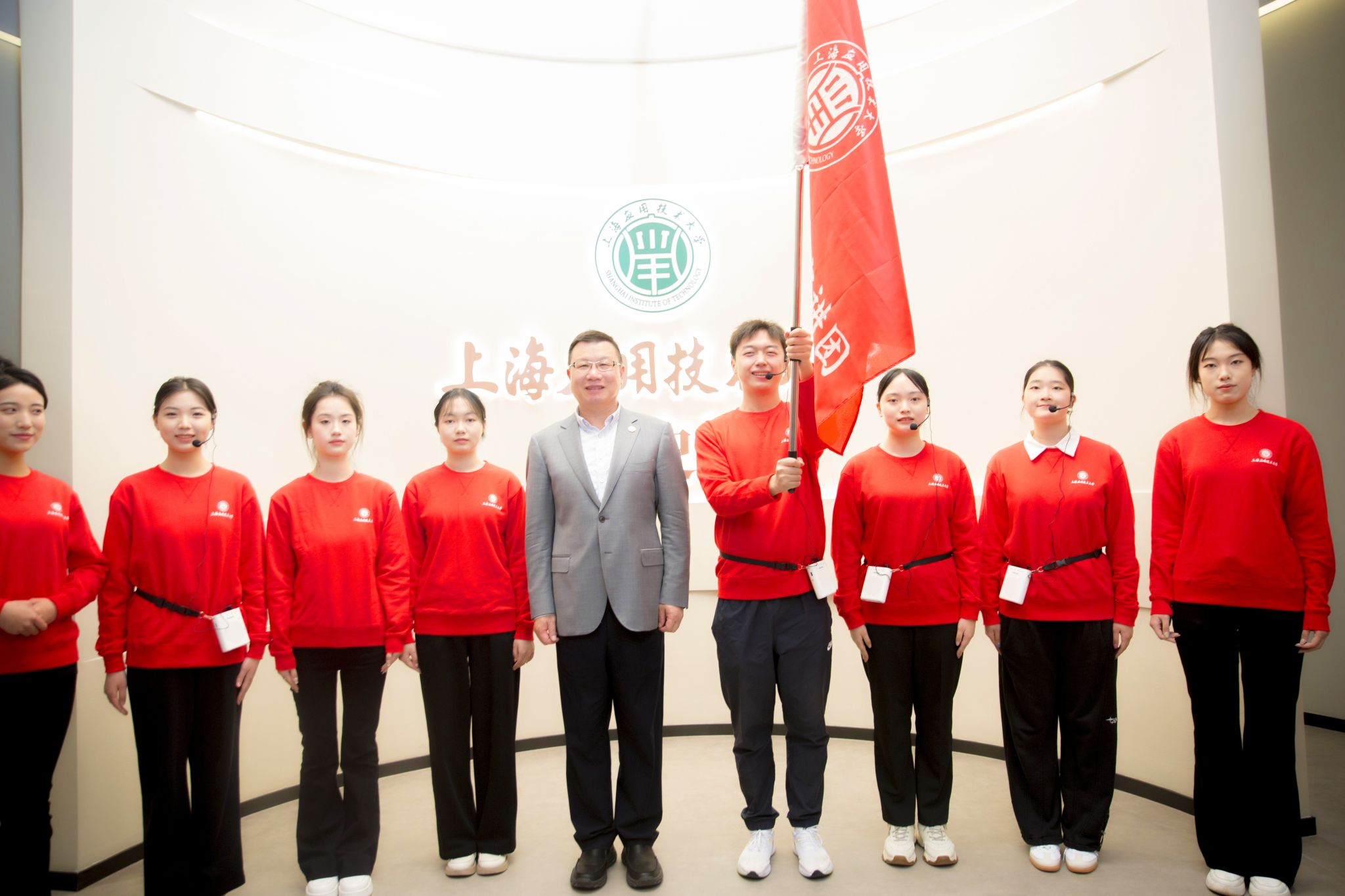 汪小帆为“上应薪火”校史宣讲团授旗。