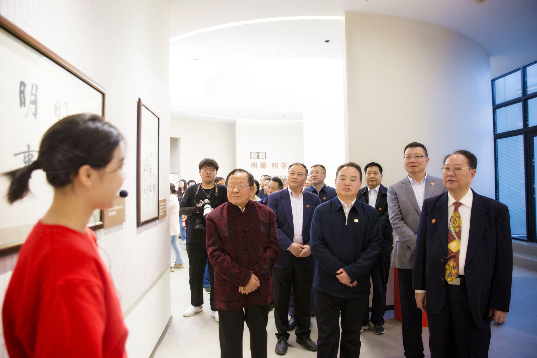 仪式结束后,郭庆松、汪小帆等和师生校友共同参观了校史馆,逐一观看“弦歌悠远、砥砺奋进、扬帆起航、党建巡礼、文化上应、春华秋实”等展区,认真听取了讲解员对校史的精彩细致的讲述。