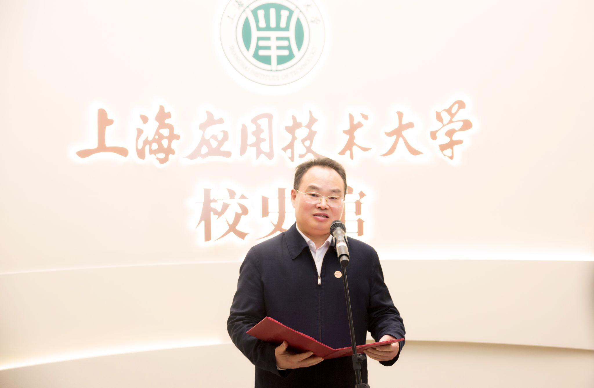 郭庆松在仪式上讲话,向校史馆开馆、口述校史首发、《上应赋》文化景观落成表示热烈祝贺,向所有参与完成“三项工程”的师生校友表示感谢。他指出,校史馆、口述校史、《上应赋》均立体化记录和展示了上应人筚路蓝缕七十载的奋斗历程和优异成绩,凸显了学校为上海、为国家、为中国高等教育事业所作的卓越贡献,是学校70年办学历史的高度浓缩。