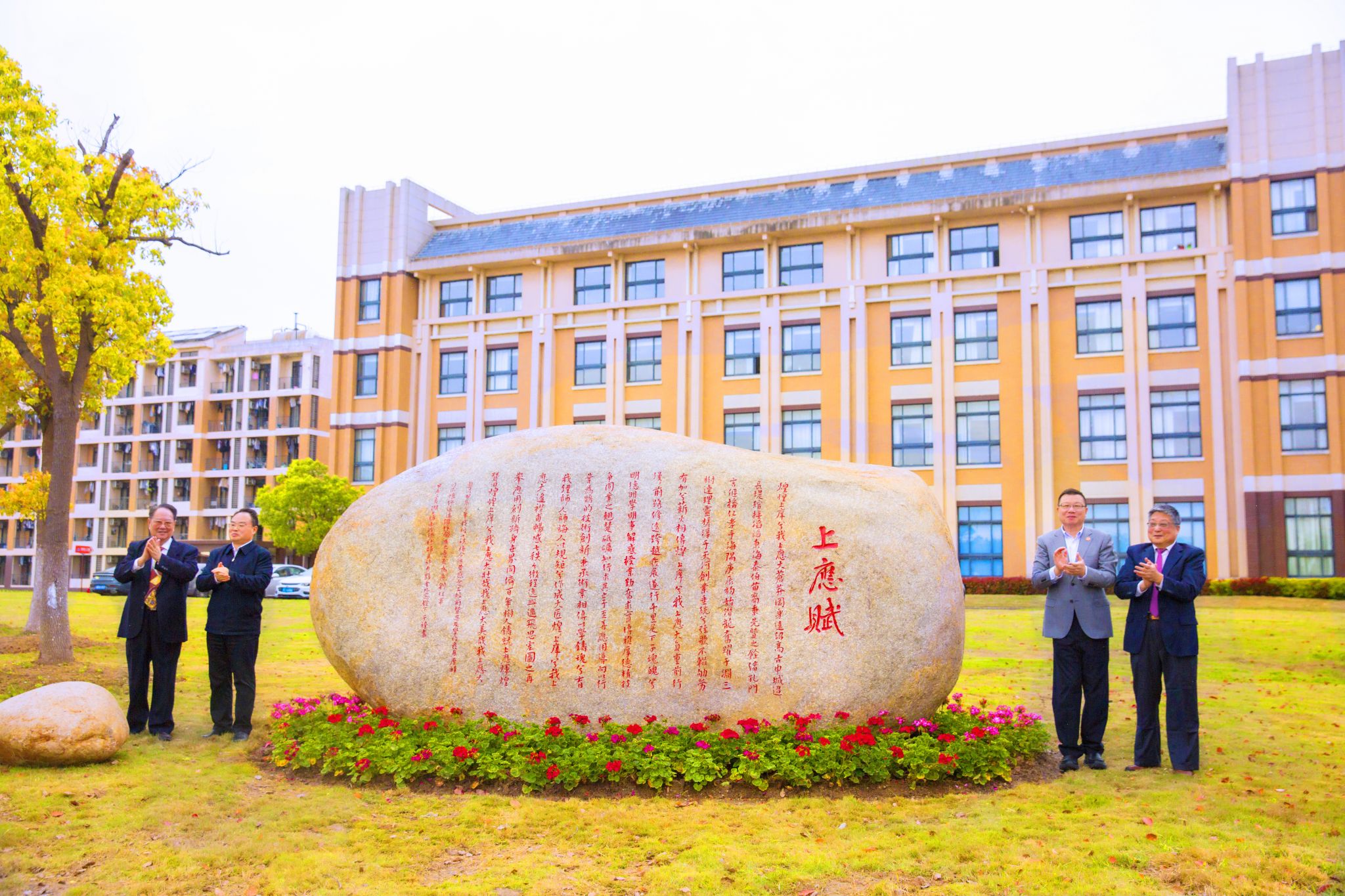 《上应赋》由学校人文学院原院长刘红军教授撰稿,我校退休教师、上海市文史研究馆馆员唐存才题写。景观石由1960级校友符卫国先生和夫人李仲英女士捐赠。