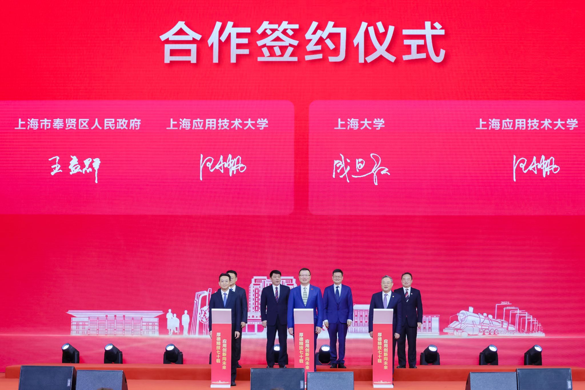 七秩薪传,华章再谱。走过七十载办学历程的上海应用技术大学,正站在了新的历史起点上,奋力迈向更美好的明天。全体上应人将永葆初心使命,应国家之所需、与时代共命运、同产业共发展,厚德精技、砥砺知行,为建设社会主义现代化国家、实现中华民族伟大复兴而不懈奋斗!