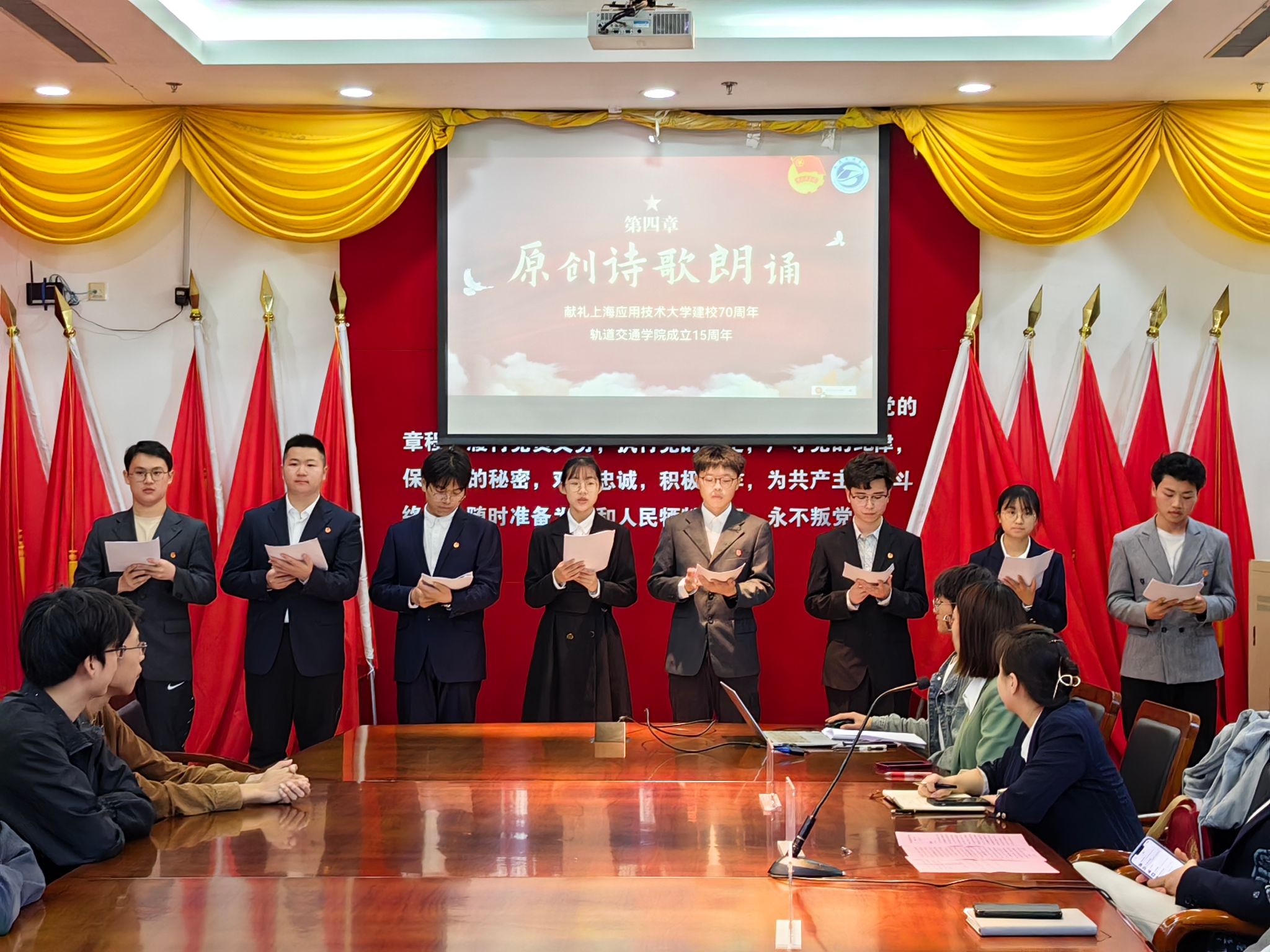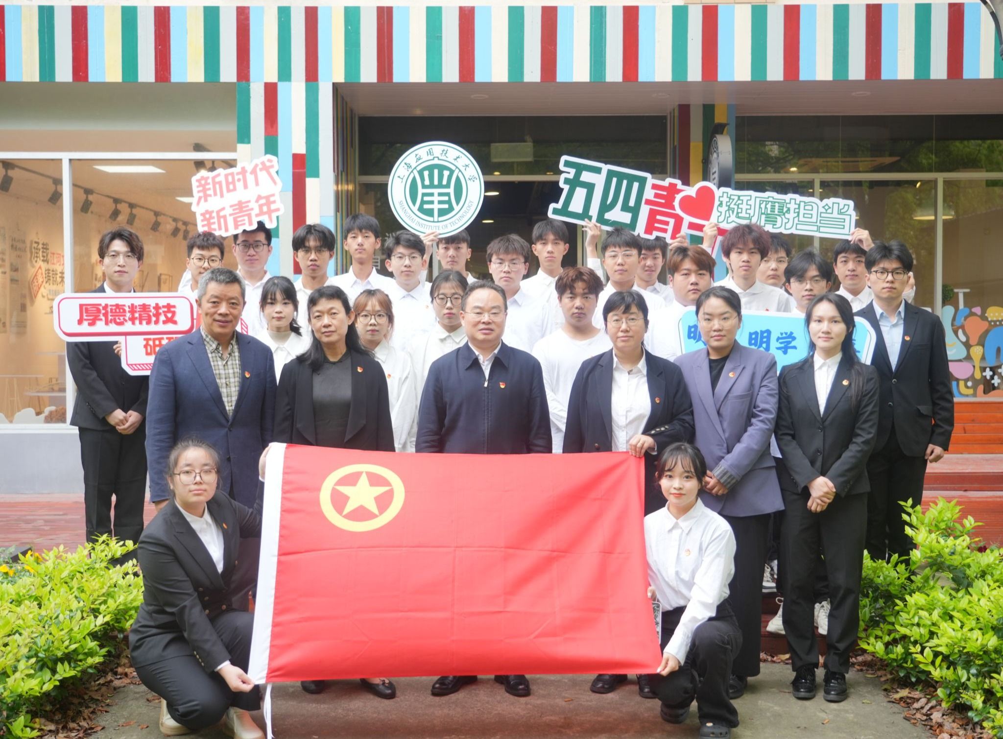 为深入学习贯彻习近平新时代中国特色社会主义思想和党的二十大精神,纪念五四运动105周年,传承和弘扬五四精神,五四青年节前夕,上海应用技术大学举行“青春有我,挺膺担当”五四集中主题团日活动,在团支部、“一站式”学生社区展团旗、亮团徽、唱团歌,共答新时代青春答卷。