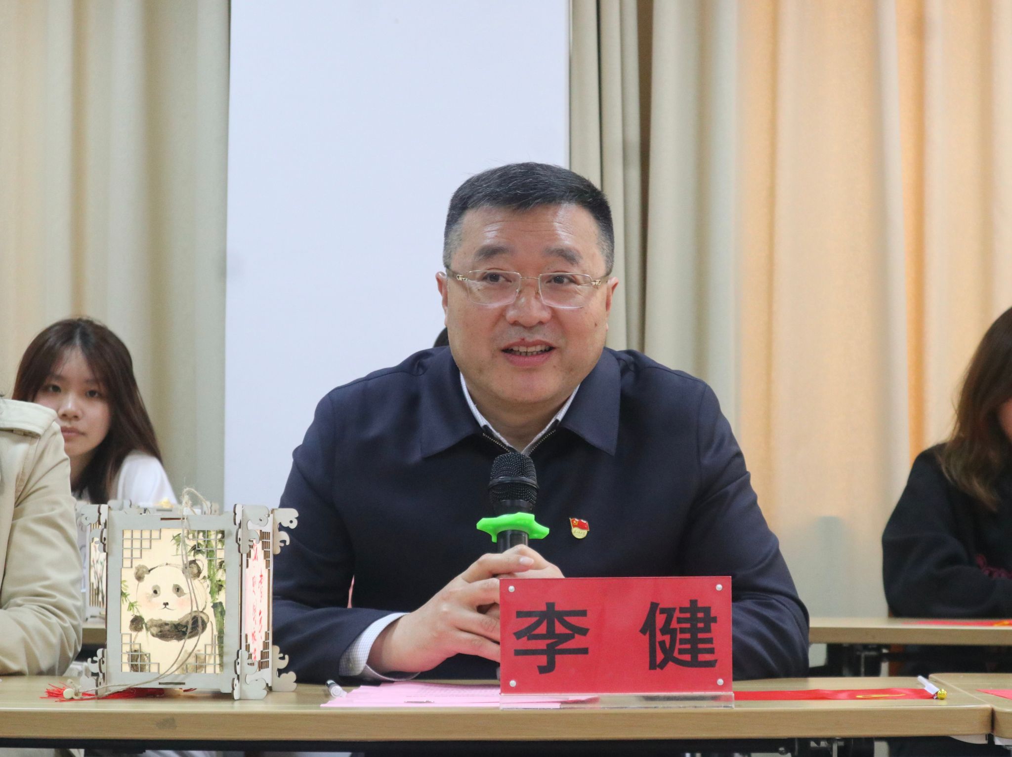 李健走进人文学院22121112团支部,与同学们一起绘制“点亮青春”中国传统宫灯灯面,写下寄语与期望。李健表示,每位青年都要主动适应时代发展,积极投身到新时代中国特色社会主义伟大事业中去,用远大理想引领人生航向、用高尚品德巩固立身之本、用过硬本领创造精彩人生,在学习中增长才干,在实践中练就本领,以真才实学服务人民,以创新创造贡献国家。
