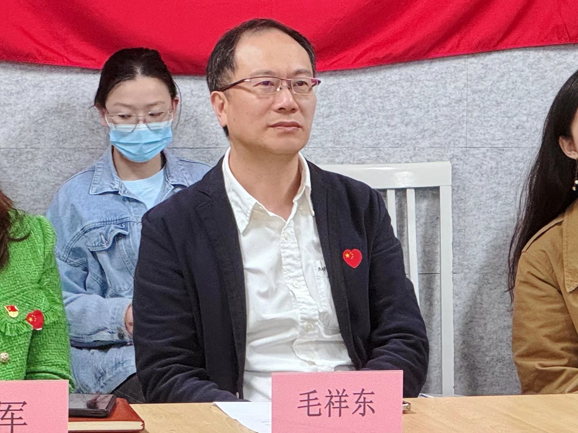 毛祥东来到艺术学院22109401团支部和徐汇校区18号社区,与同学们一起学习党的二十大报告、五四精神及2024年全国两会精神,并聆听同学们的主题海报设计介绍。毛祥东勉励同学们要顺应科技发展,努力应用高科技体现与传播艺术内涵,在注重专业知识学习的同时,还要培养更广阔的家国情怀、更长远的眼光目标,更好体悟艺术、传播艺术。