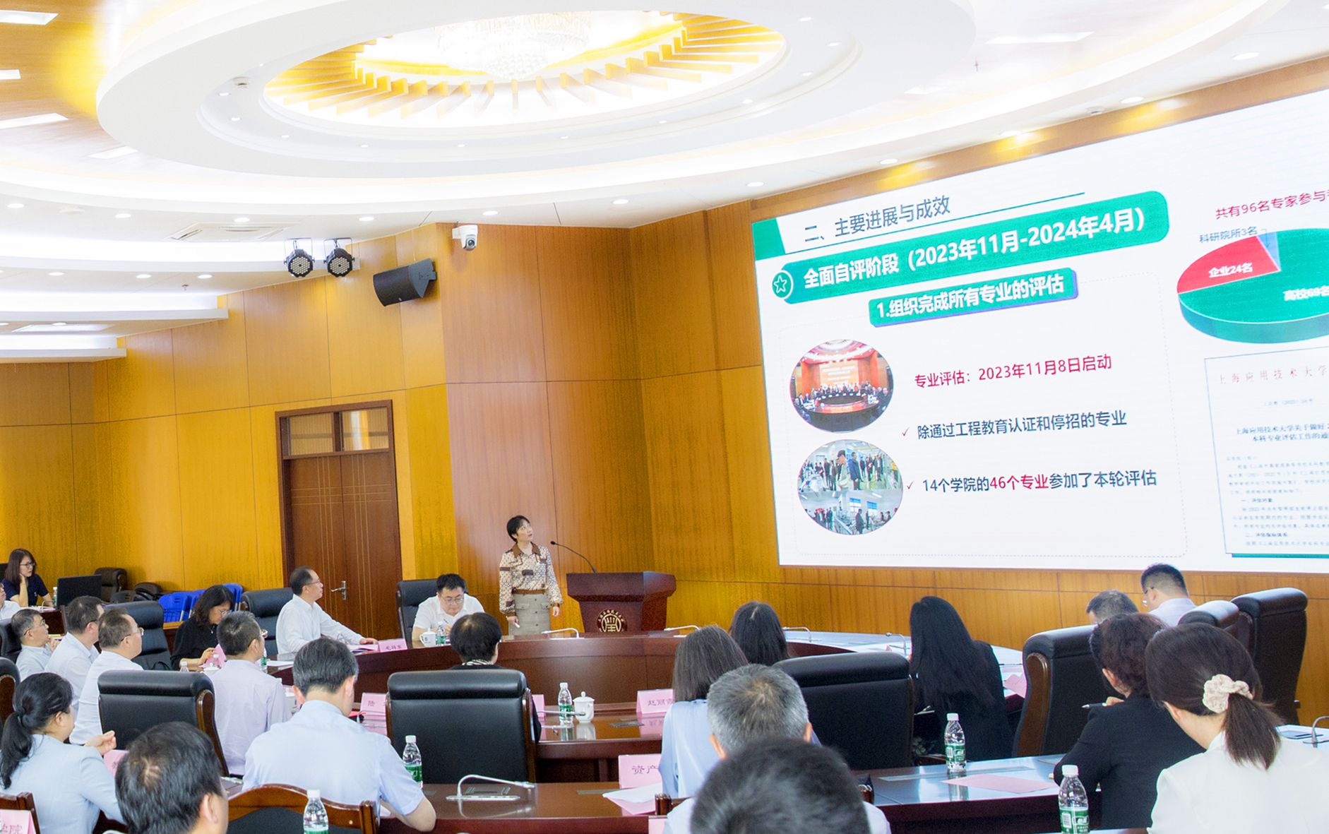 校党委副书记、副校长王瑛,校党委副书记、纪委书记、监察专员李健,上海市教委督导室一级主任科员唐金良,上海市教育评估院高教所所长冯修猛以及学校职能部处负责人、各学院负责人、审核评估评建工作办公室全体成员参加会议。