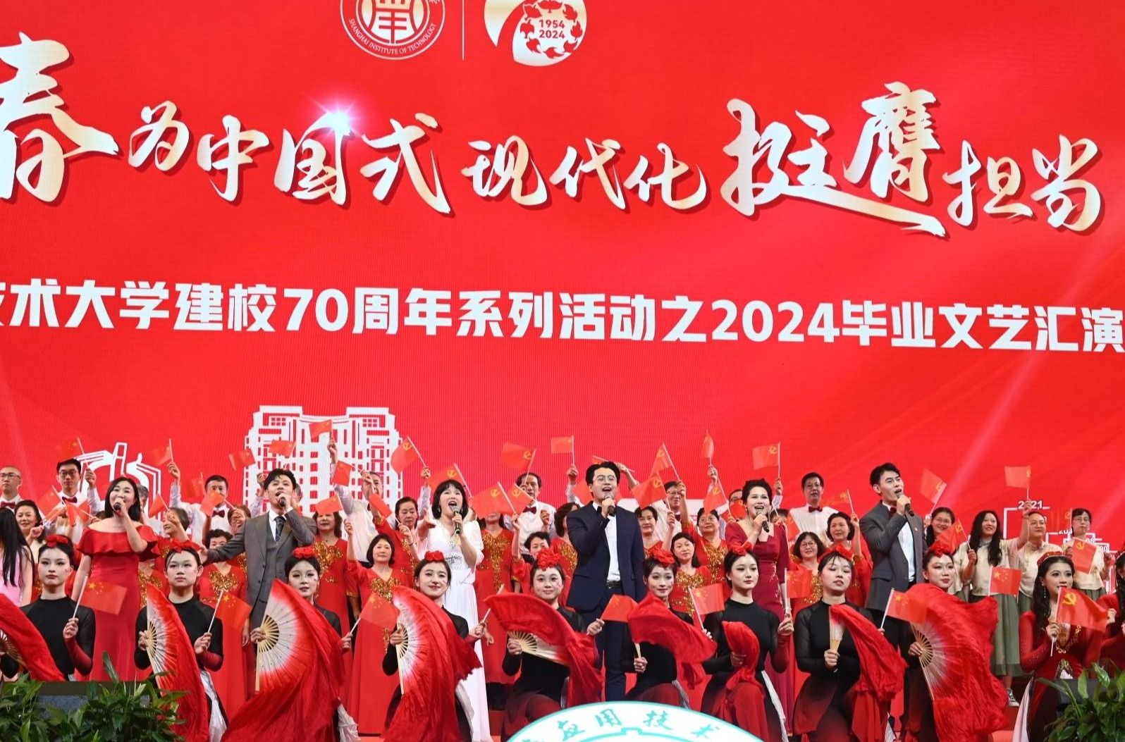 岁月流金、青春激情,灿烂征程、奔赴未来。难忘的送别,轻轻道一声珍重!6月28日,“青春为中国式现代化挺膺担当”上海应用技术大学建校70周年系列活动之2024年毕业文艺汇演在奉贤校区体育馆举行,我们共同回首苒苒岁月,共同唱响青春之歌。