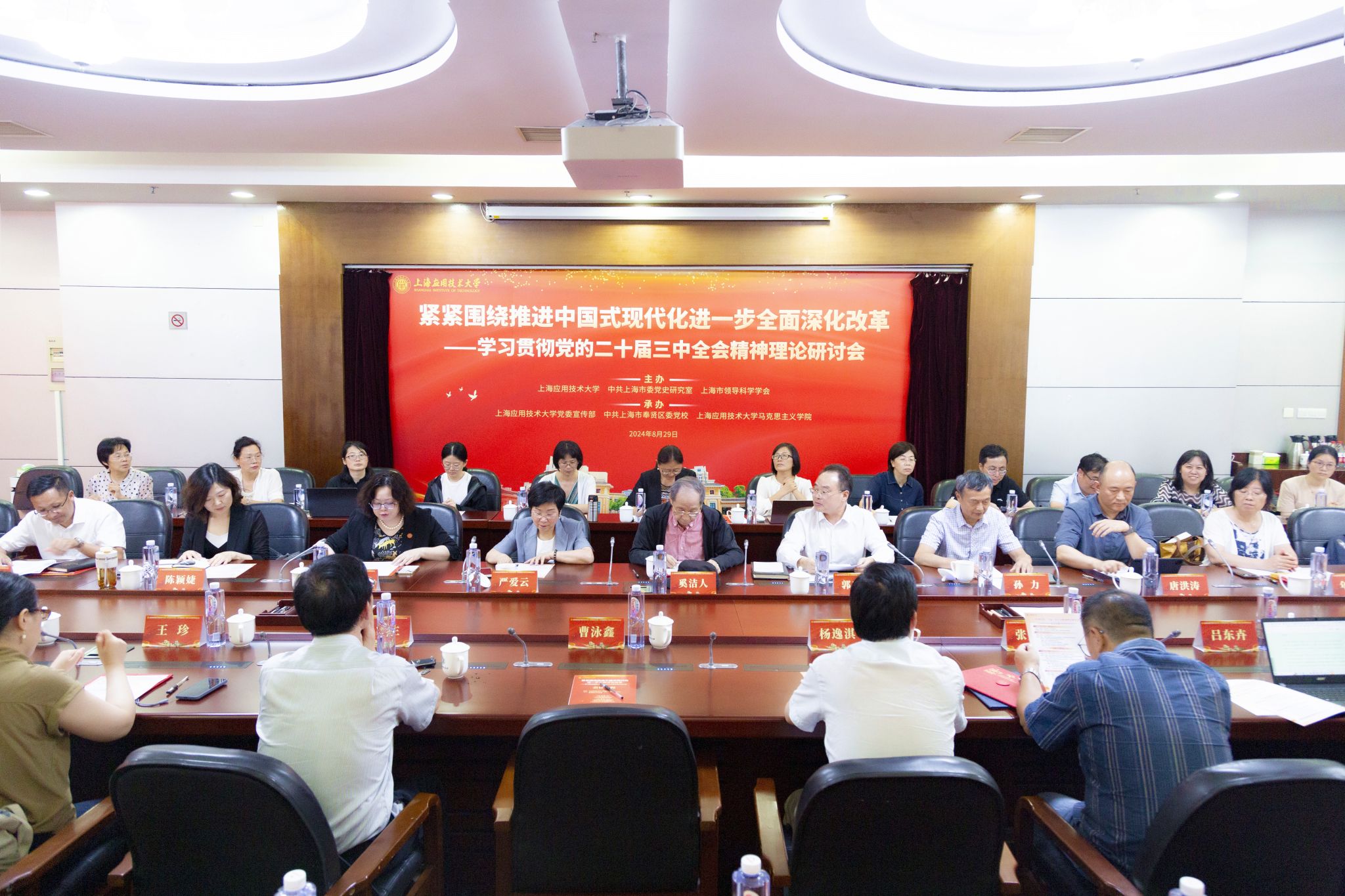 8月29日,由上海应用技术大学、中共上海市委党史研究室、上海市领导科学学会共同主办,上海应用技术大学党委宣传部、上海市奉贤区委党校、我校马克思主义学院承办的“学习贯彻党的二十届三中全会精神理论研讨会”在我校举行。校党委书记、上海市领导科学学会会长郭庆松教授作学术致辞。校党委副书记陈海瑾主持会议开幕式。
