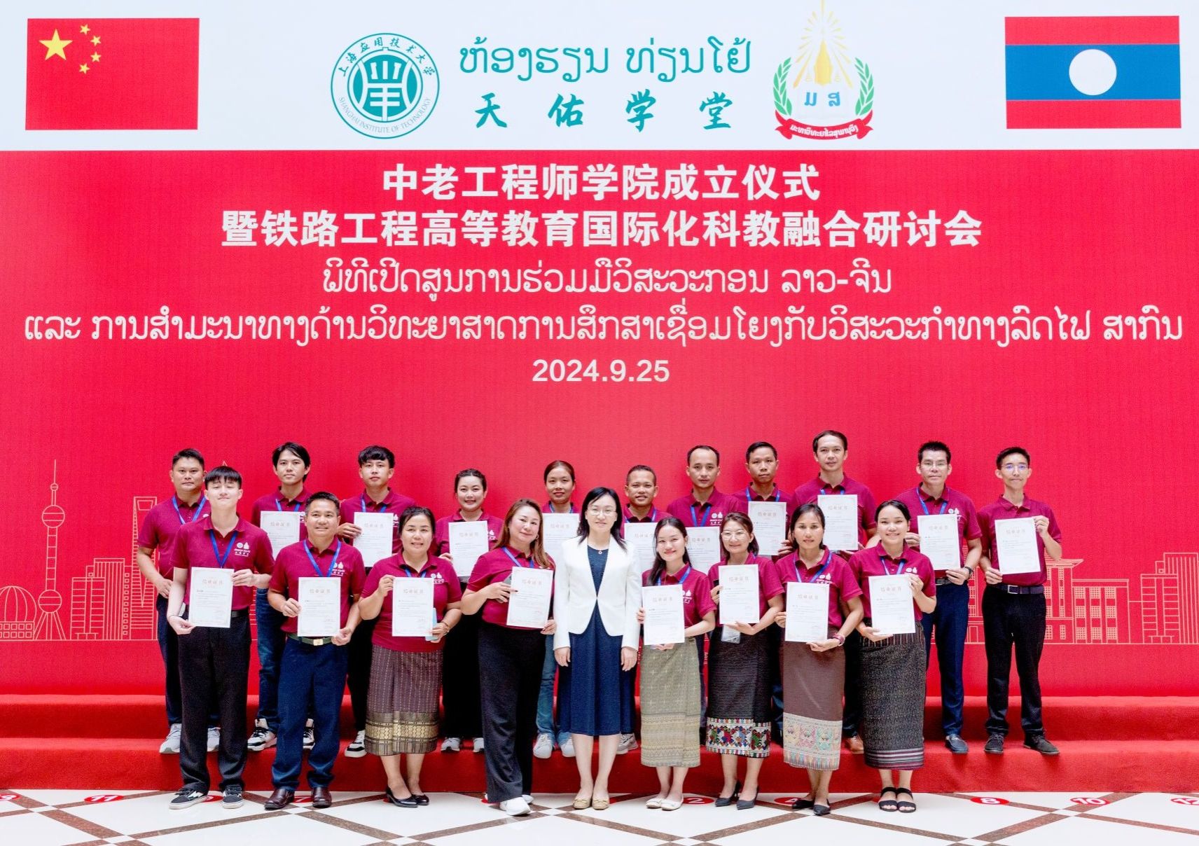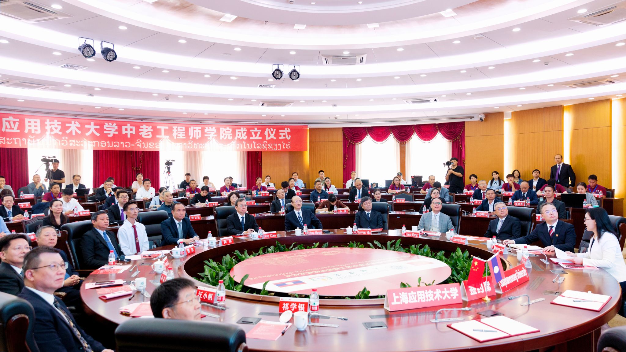 教育部、国铁集团、国家铁路局、市政协、市友协、市外办、市教委、市商务委、同济大学高铁及站城融合研究院、通号上海工程局、中铁科研院、中铁上海院、卡斯柯、中铁二院、中铁二局、中铁二十四局、云南省交通运输行业协会、中国铁路上海局、中国铁路昆明局、华测导航等部门和企业代表,中新社、人民网、上海电视台、解放日报、文汇报、澎湃新闻、上海日报等新闻媒体记者,上海应用技术大学有关职能部门负责人、智能技术学部轨道交通学院师生代表、在校老挝留学生代表,老挝驻上海总领事馆、老挝苏发努冯大学等老方代表,老挝公共工程与运输部、老中铁路有限公司、老挝苏发努冯大学、老挝国立大学等“一带一路”中老铁路互联互通人才研修班学员,共同出席仪式并见证中老工程师学院成立。