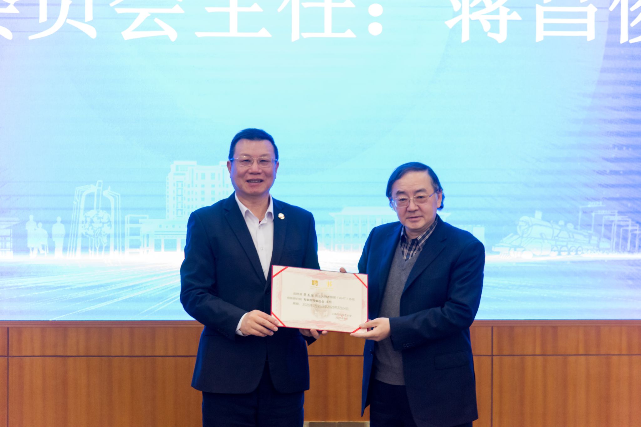 技术智能(AI4T)协同创新研究院由中国工程院院士蒋昌俊担任专家指导委员会主任,来自高校、科研院所和知名头部企业的资深专家担任专家指导委员会委员。由上海人工智能研究院院长宋海涛出任首任院长,上海应用技术大学科学技术研究院院长杜永担任执行院长。活动现场为专家指导委员会颁发了聘书。