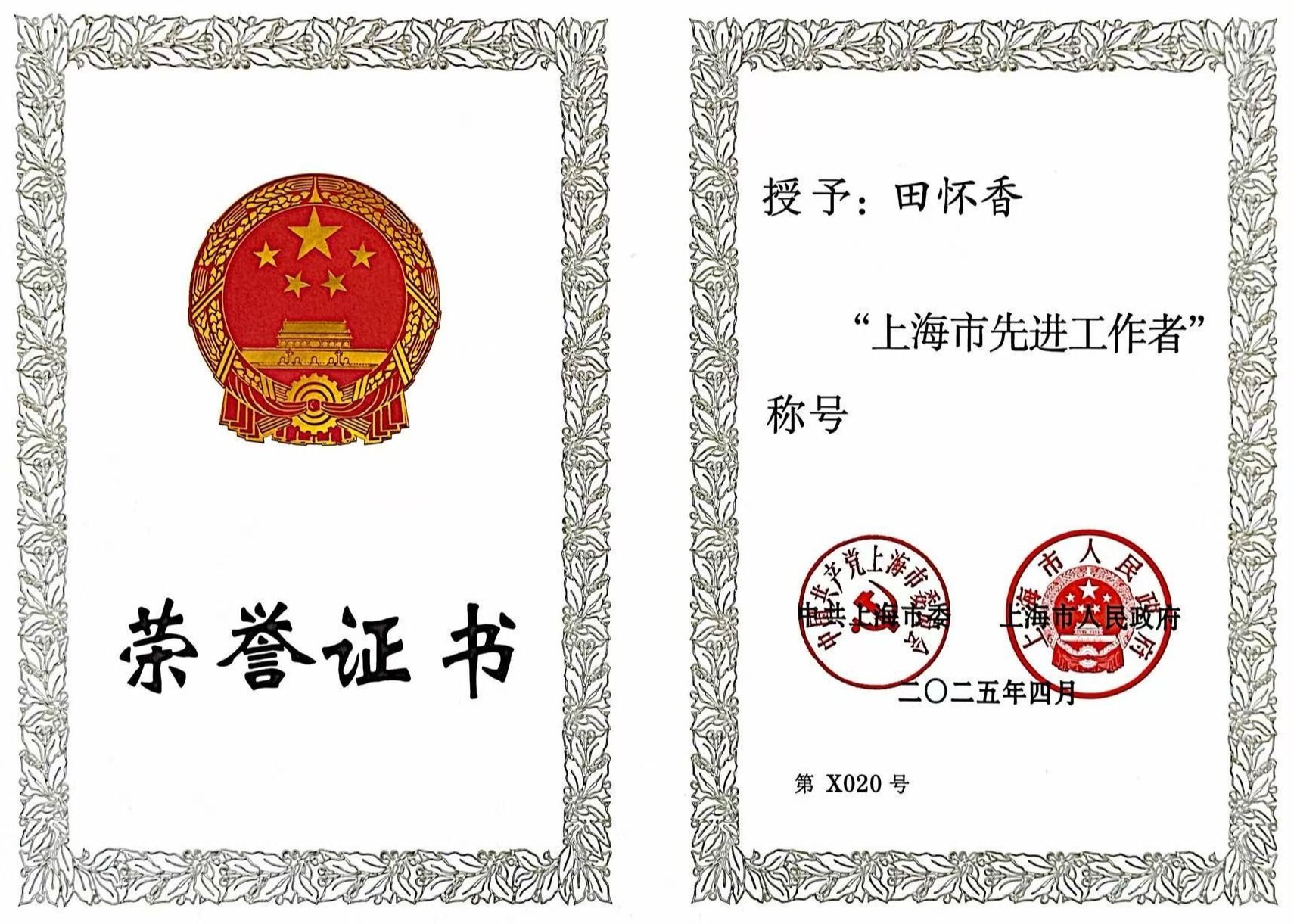 我校田怀香教授荣获“上海市先进工作者”荣誉称号