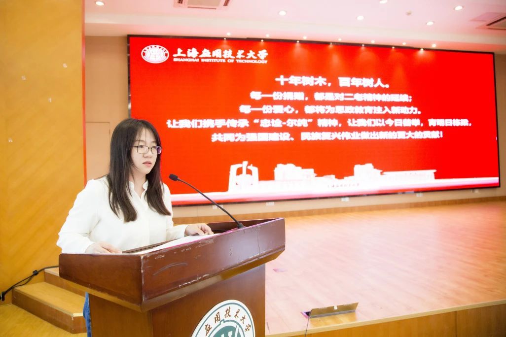 捐赠仪式上,上海畅远教育科技有限公司、美澳国际教育总裁何奋女士,2012年度“忠诠-尔纯”思想政治教育奖三等奖获得者、计算机学院2014届校友率先向学校“忠诠-尔纯”思想政治教育奖基金进行捐赠。