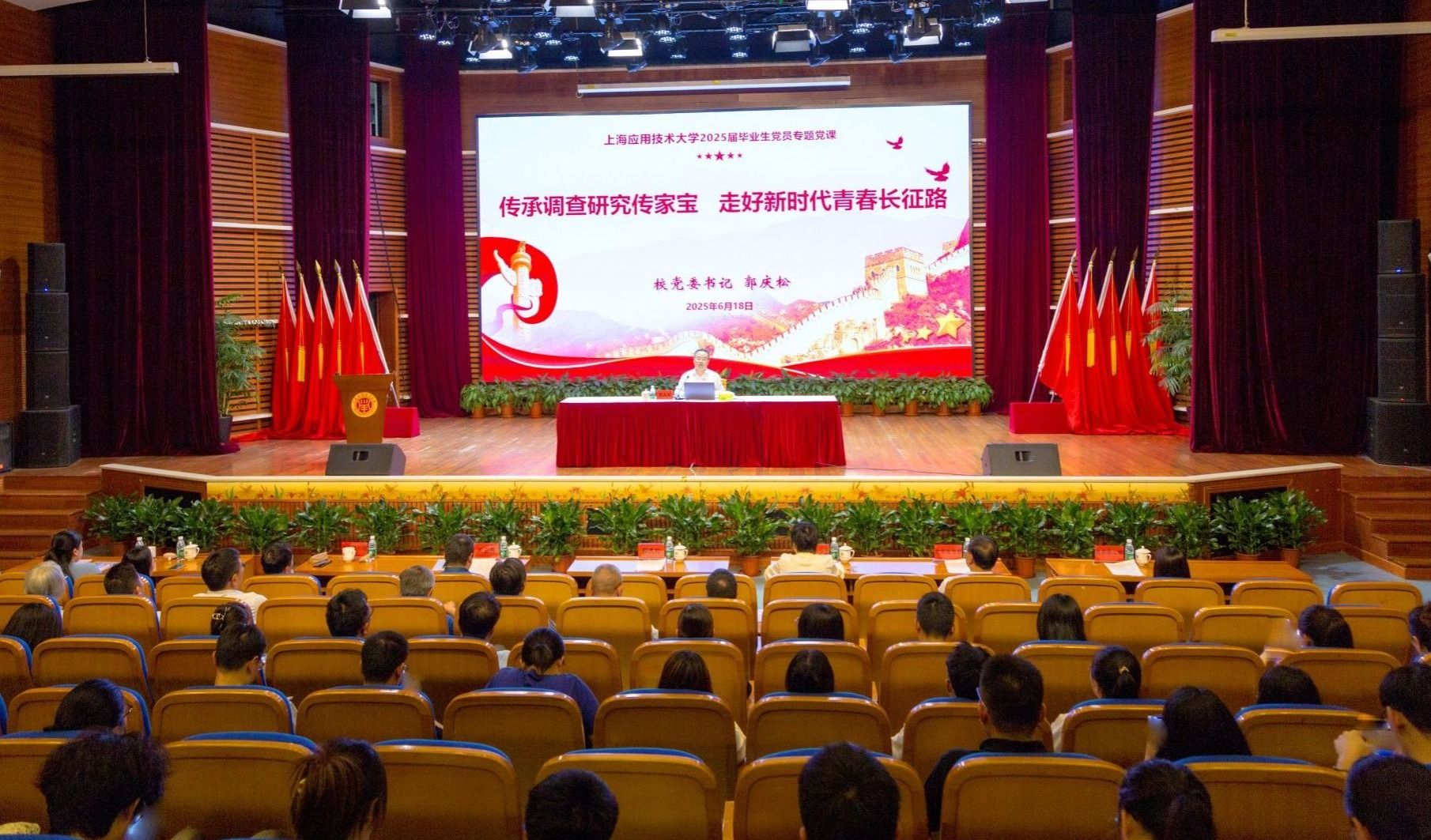 “基层最丰富,实践最生动,群众最智慧。”6月18日,在奉贤校区,校党委书记郭庆松以这句掷地有声的开场白,为2025届毕业生党员开启了一堂特殊的专题党课。围绕《传承调查研究传家宝 走好新时代青春长征路》主题,郭庆松将党的优良传统与青年使命深度融合,为即将奔赴四方的学子送上沉甸甸的“青春行囊”。