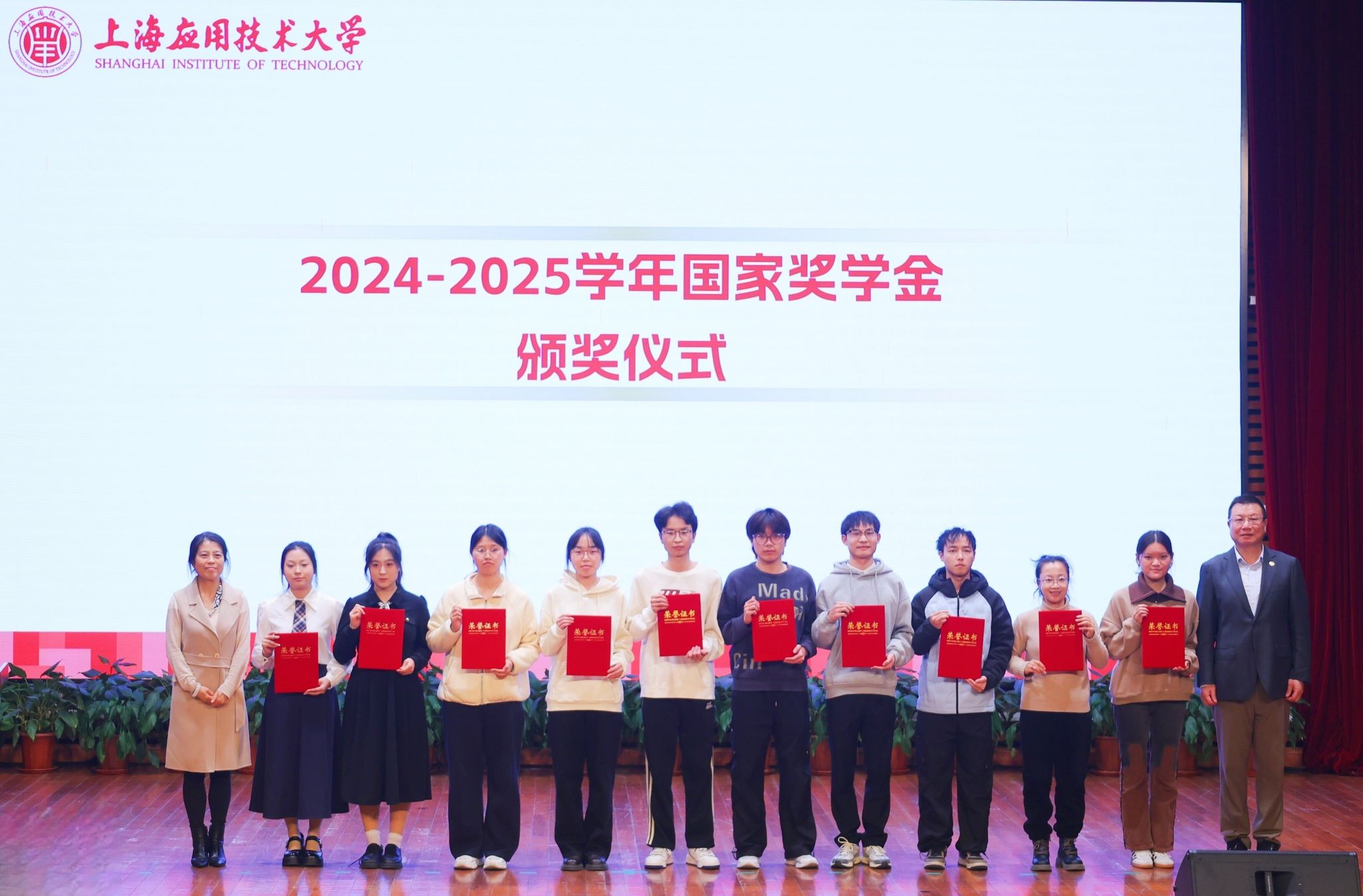 岁末时节,硕果盈枝。12月19日,上海应用技术大学2025年颁奖典礼暨学风建设成果展示会举行。校长汪小帆,校党委副书记、副校长王瑛,上海市教委学生处一级调研员赵靖茹等领导出席,学校职能部处、各学院负责人及师生代表齐聚,表彰先进典型,凝聚奋进共识。颁奖典礼由党委学生工作部、人民武装部部长,学生处处长袁翔主持。