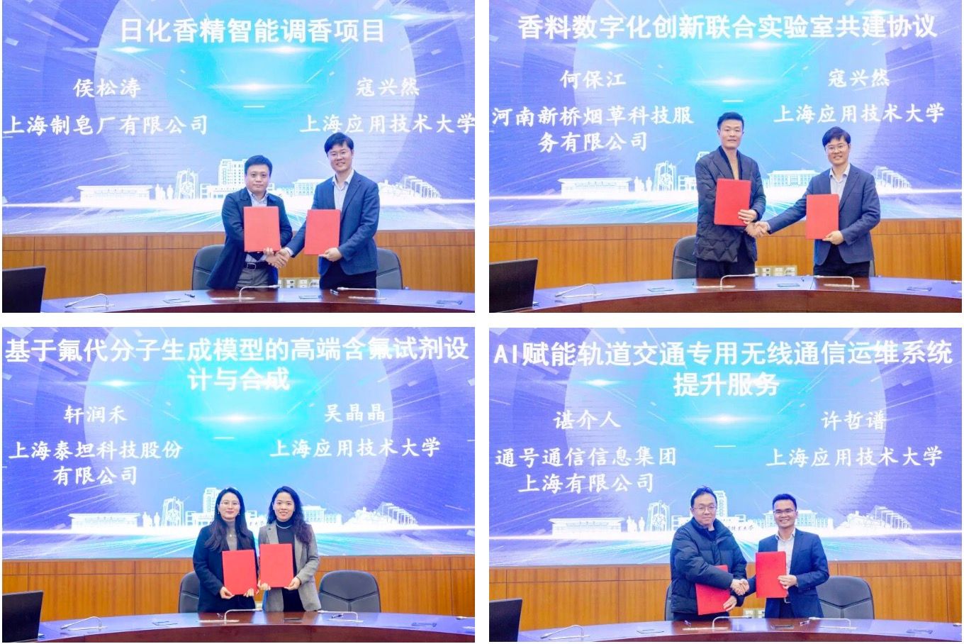 2025年初,上海应用技术大学携手上海人工智能研究院,共同成立技术智能(AI4T)协同创新研究院,标志着学校在AI赋能科研的系统布局上迈出关键一步。研究院聚焦“AI+创香”“AI+轨道交通智能运维”“AI+氟代制药”三大特色方向,同时向工学、农学、人文社科、艺术等多学科全面拓展。近一年来,深耕 AI +技术研究与产业应用,深化校企协同,构建了共生、共研、共创、共享、共赢的新格局。