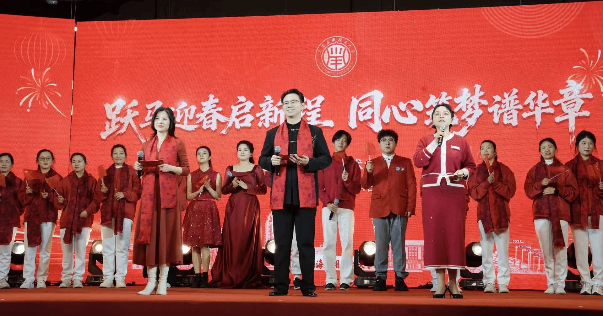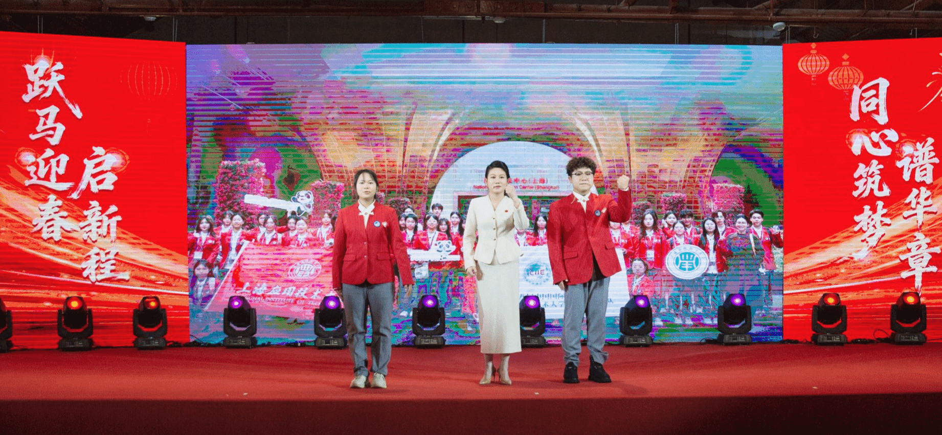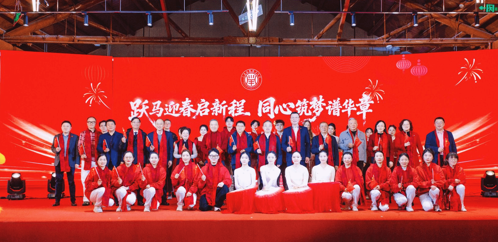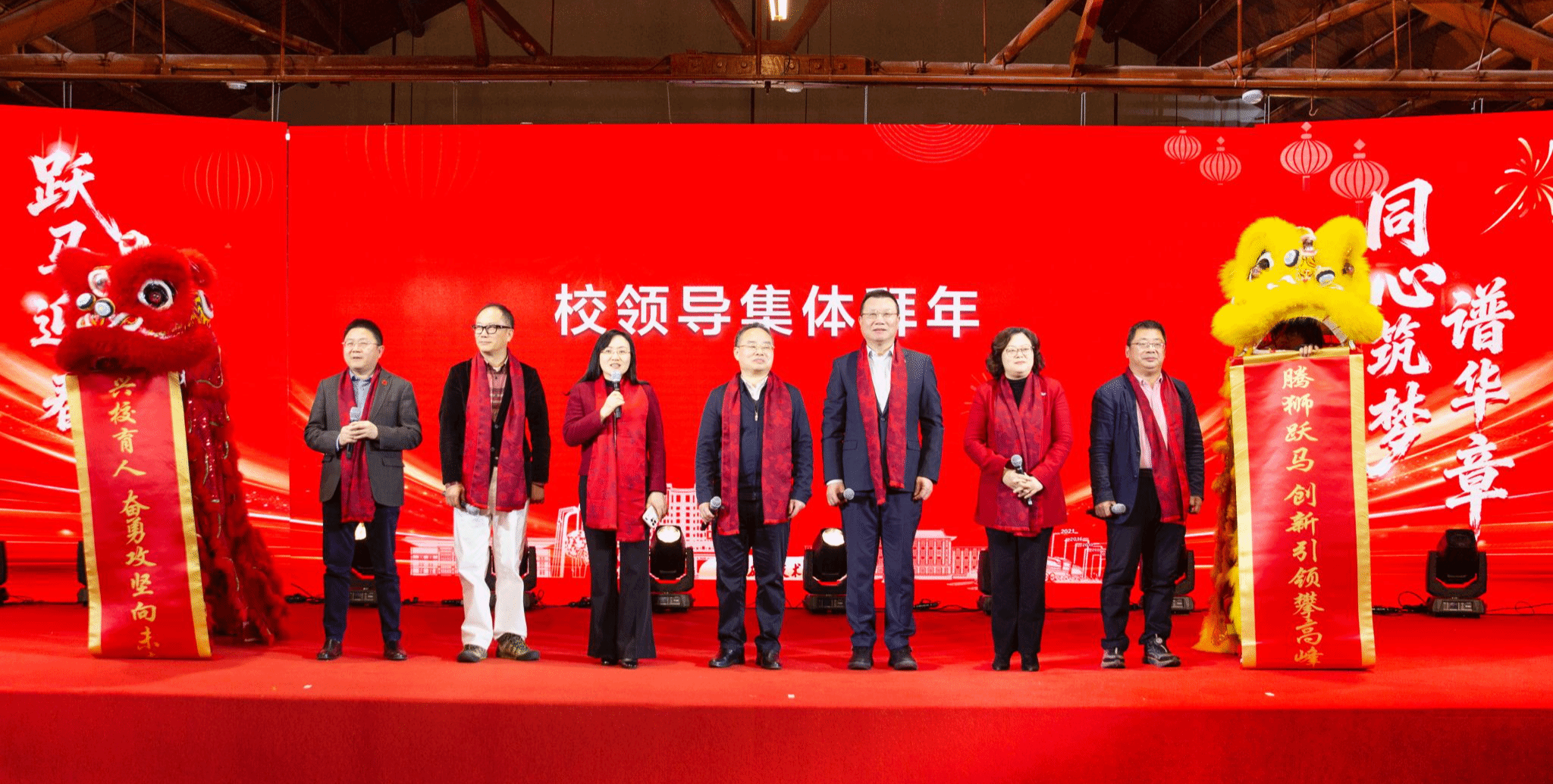 骐骥跃春同欢聚,暖意融融话发展。1月24日下午,学校徐汇校区26号楼张灯结彩,笑语盈堂,“跃马迎春启新程,同心筑梦谱华章”2026年新春团拜会在此温暖启幕。