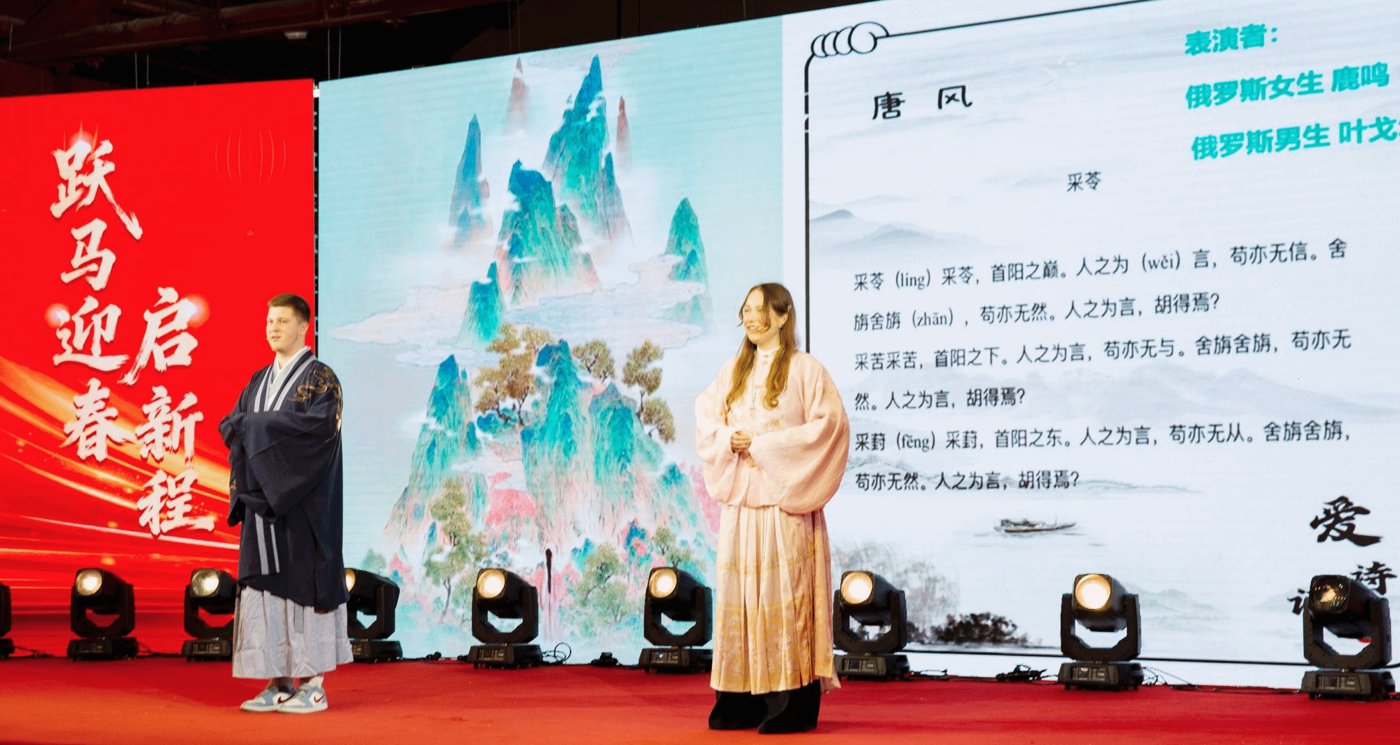 俄罗斯留学生带来古诗词吟诵《采苓》,展现了中华文化的国际魅力;奋斗的足迹镌刻荣光,经典歌曲《明天会更好》寄托对未来的美好向往。