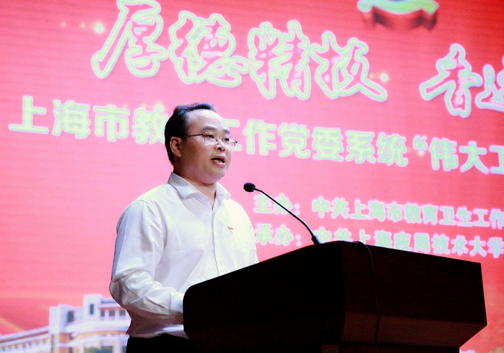 为迎接新中国成立71周年,上海市教卫工作党委系统“伟大工程”系列示范党课之“厚德精技 香远益清”主题党课在上海应用技术大学开讲。