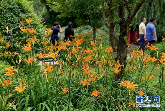6月13日,上海应用技术大学奉贤校区校园内,萱草花竞相开放。 当日,“2020中国(上海)萱草文化节”在上海应用技术大学开幕,校园里数百个品种的萱草花竞相绽放,萱草科研推广、萱草文化交流等多项活动同时举行。 新华社记者刘颖摄