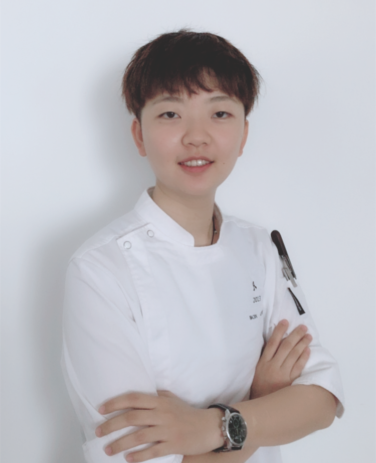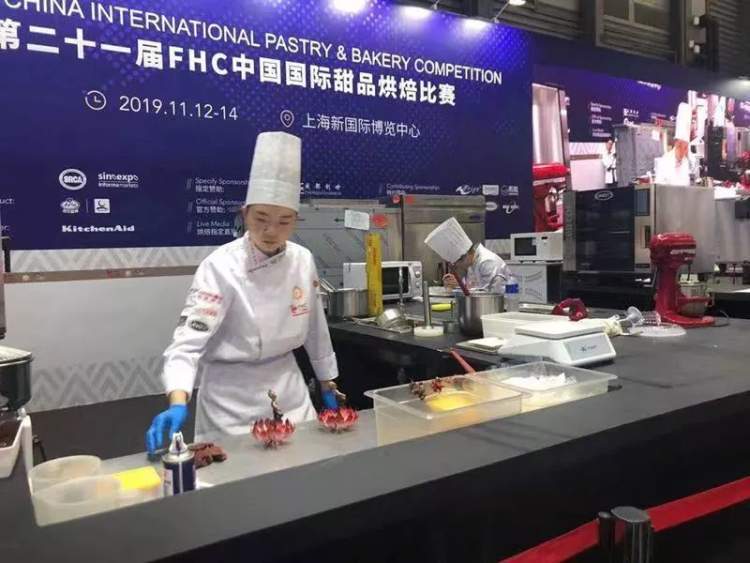 大学毕业前夕,江雪和好朋友一起开了家网上甜品店,制作甜品和蛋糕,从选购选材料到成本核算,制作,宣传,配送到消费者手里全都是两个人完成的。 网上开蛋糕店有个硬伤就是运输。“运输过程中温度不定,如果遇到暴力快递都会影响产品的味道和卖相。所以当初创业我们确定的消费群体是奉贤海湾大学城三校的大学生。 新鲜日配,超过一天的配送区域都不接单。 原料也是自己选购,走的是薄利多销,很受大学生欢迎。” 然而,尽管小有盈利,暂时可以养活自己,但江雪知道这条路并不好走,不学习过硬的技术网店没有可持续性。 上海怡安食品有限公司是上海应用技术大学校企合作的实习生基地,这家公司的CEO刘威也是应技大的毕业生。 一次刘威学长回母校做讲座,述说他的工作和创业的经历。他说毕业时每个人都会感到迷茫,最重要的是提高自己,积攒力量 ,厚积薄发。 为此,江雪下决心结束了短暂的创业到选择怡安食品有限公司就业,从基层做起,师从烘焙行业大咖卢宝根师傅。 卢宝根师傅告诉江雪,一个好的研发人员不仅是个美食家,还要是化学家,物理学家,机械家,艺术家! 而所学专业也让江雪在学徒过程中游刃有余。在产品研发的过程中要考虑到原物料选择,加工工艺流程,加工方式,产能与损耗比,生产流程标准化等等,这些内容涉及宏观上的产品外形大小颜色,还涉及微观上比如糖的焦化,水乳融合等等。 为了检验自己的学习过程,今年7月江雪报名参加了2019FHC中国国际甜品烘焙大赛。