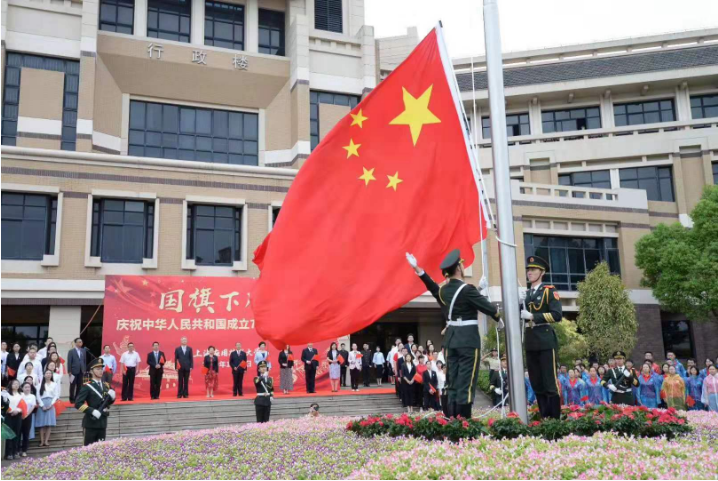 上海应用技术大学举行“国旗下成长”庆祝新中国成立70周年升旗仪式 五星红旗,你是我的骄傲 10月1日上午8点,上海应用技术大学隆重举行“国旗下成长”庆祝新中国成立70周年升旗仪式。英姿飒爽的护旗手迈着铿锵有力的步伐,护送国旗行进至升旗台。当嘹亮的国歌声响起,鲜艳的五星红旗冉冉升起,现场师生高唱国歌,心潮澎湃,面向国旗行注目礼,表达对祖国无限的热爱和崇高的敬意,共同祝福伟大的祖国蒸蒸日上、繁荣富强。 上应大研究生会主席汤硕同学代表上应学子向祖国送上了最诚挚的祝福,继续秉承“厚德精技,砥砺知行”的工程师文化内涵,勇立时代潮头,争做时代先锋。上应大学生艺术团带来了诗朗诵《可爱的中国》,青年教师代表老师合唱了歌曲《今天是你的生日》,向伟大祖国母亲致以最深情的祝福。 升旗仪式结束后,全体师生代表前往学校各报告厅集中收看国庆庆祝活动和阅兵式。同学们通过叠千纸鹤、叠爱心等活动向祖国真情告白!
