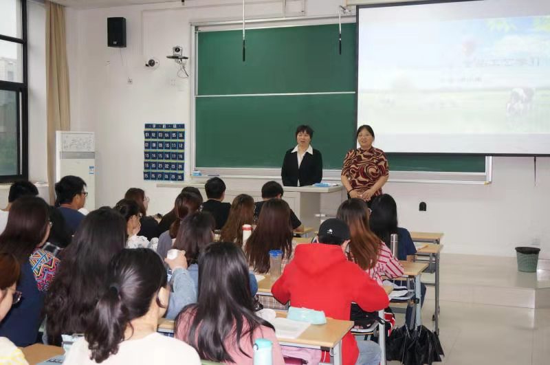 乳制品工艺学课堂,左边为专业课老师周小理教授,右为校马克思主义学院高雅珍教授。每一门“课程思政”重点建设的课程教学团队均配备一至两位马克思主义学院的教师。