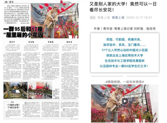 2021 年带领团队参加 2021 年园冶杯大学生国际竞赛获得荣誉奖,参加上海(国际)花展并获得未来园艺师景点展示区金奖。她与清华大学、同济大学等优秀学子同台竞技,参加 2021年扬州世界园艺博览会并获得园艺微景观创作国际竞赛特等奖,每天花 13 小时准备,8 小时内与团队成员从无到有,利用废弃材料“变废为宝”,共同营造出精致小花园,最终问鼎该项目国际最高荣誉。