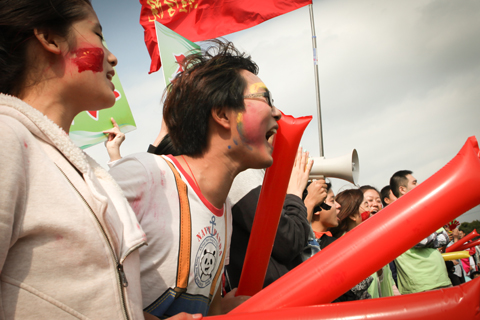 随着比赛的开始,高昂的呐喊声响彻整个操场,似乎运动会不仅是运动员之间的角逐,更是呐喊助威声的较量。