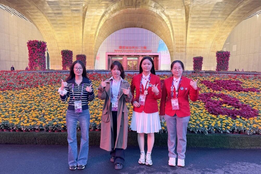 2025年9月,熊盈盈与鲁子焕共同入选第八届进博会长期管理岗志愿者,这是她们首次以“小叶子”的身份参与进博。10月,周钰和李锦添紧随其后,1216寝室成功集齐四张“小叶子”工作证。